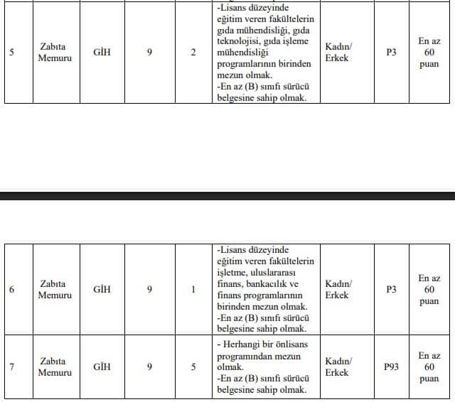 - İlan edilen unvan için mezun olunan okul itibarıyla öğrenim şartlarını taşımak ve bu öğrenimle ilgili olarak 2024 yılı Kamu Personeli Seçme Sınavından (KPSS (B) grubu) alım yapılacak kadroların karşısındaki puan türlerinden, belirtilen asgari KPSS puanını almış olmak,