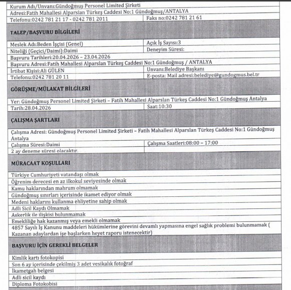 Gündoğmuş Belediyesi 3 İşçi Alacak! Başvurular Başladı (2026)