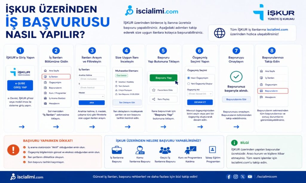 • Başvurunuzu tamamlayın: Uygun ilanı seçtikten sonra sistem üzerinden başvuru işlemini onaylayarak süreci tamamlayabilirsiniz.