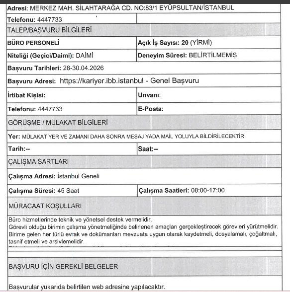 Not: İstanbul genelindeki diğer iş fırsatlarını değerlendirmek isterseniz, güncel olan İBB personel alımı 2026 ilanlarına da göz atabilirsiniz.