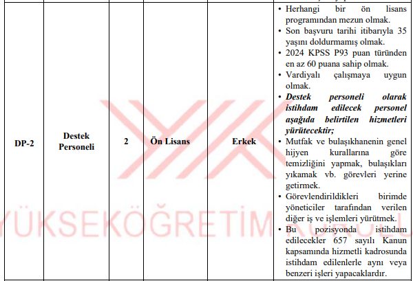 Lise, ön lisans ve lisans mezunları için ayrılan bu kontenjanlarda, adayların 2024 KPSS puan sıralamasına göre değerlendirileceği açıklandı. İşte birim bazlı tam liste ve kadro detayları: