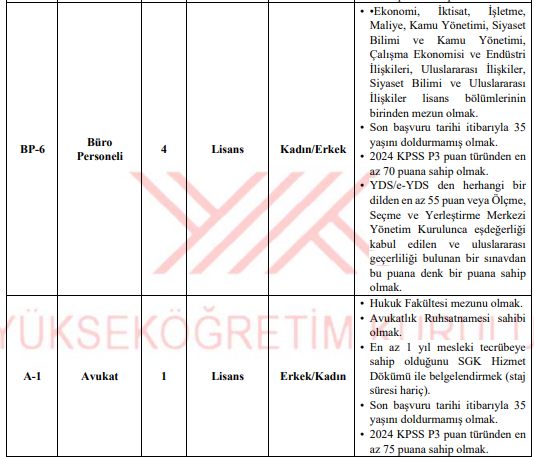 İlan kapsamında koruma ve güvenlik görevlisi, büro personeli, teknisyen, avukat ve destek personeli gibi farklı unvanlarda kadro açıldı. Başvuru yapacak adayların 35 yaşını doldurmamış olması ve her pozisyon için belirlenen özel öğrenim şartlarını taşıması gerekiyor. İşte YÖK personel alımı kadro dağılımı ve başvuru şartlarına dair tüm detaylar…