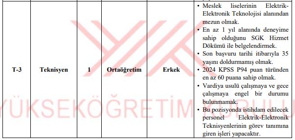 - Pozisyonlara, eşdeğerliliği kabul edilen bölüm/program/dallardan mezun olanların da başvuruları kabul edilecektir.